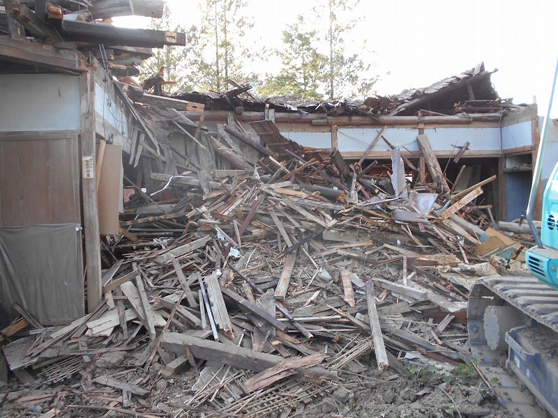 土壁の家は、木・竹・藁などが混じり合っているので、できるかぎりの分別をしながらの作業となります。